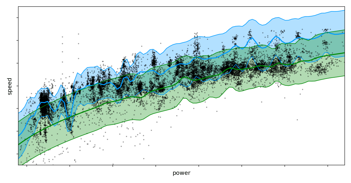 A data-driven approach is used to learn speed-power curves probabilistically. These models can then be used to assess the performance of a vessel.
